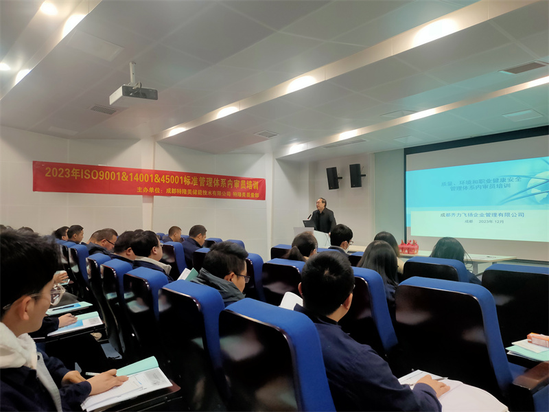 成都特隆美储能技术有限公司,成立于2017年,是一家以从事专业技术服务业为主的企业。 今天在企业进行ISO90011400154001 标准管理体系内审员培训,公司质量部内审员内训是一个非常重